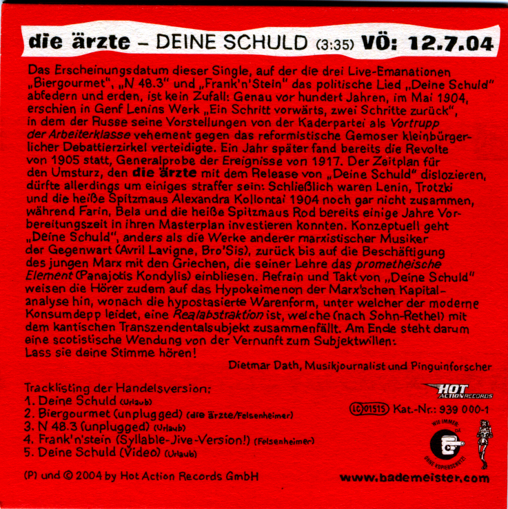 Jahr: 2004 Label: Hot Action Records Formate: 5" Promo-CD Produzent: Uwe Hoffmann & die ärzte