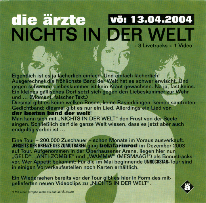 Diese Promo-CD dient der Promotion der dritten Single des 2003er Albums "Geräusch".