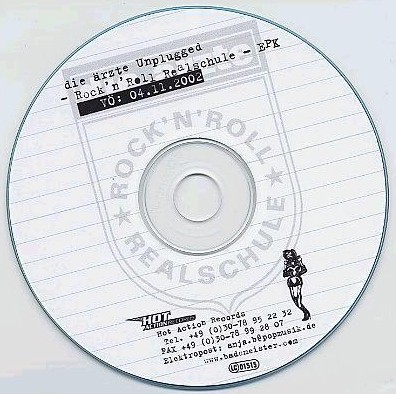 Jahr: 2002 Diese CD wurde zum Anlass der Promotion des Albums "Unplugged - Rock'n'Roll Realschule" an TV Stationen/Zeitungen u.ä. verschickt. Die CD ist eine CD-ROM, aber trotzdem ein offizieller Promo-Artikel. Sie beinhaltet Song Snippets (5 Songs, s.u.), Pressefotos, Pressekonferenz im Albert Schweizer Gymnasium (exklusiv auf dieser CD-ROM), Band Biographie/ Presse Texte und einen Covershot. Die CD ist extrem rar. Hier könnt ihr noch ein Blick auf die Rückseite und die CD werfen. biedä |