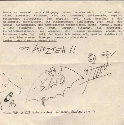 1994 Die legendäre EP-Single, die Coverversionen von Punksongs + "Paul", sowie ein Erklärungsblatt enthält (Seite 1 / Seite 2) - wurde bis 1998 nur bei Konzerten verkauft und ist nur als EP Vinyl-Single erschienen. Sie wurde allerdings auf dem Nachfolger "5, 6, 7, 8 - Bullenstaat!" noch mal komplett auf CD wieder veröffentlicht. |