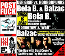 VÖ: 27. 04. 2007 Eine gemeinsame Single von Bela B. und den japanischen Horrorpunks von Balzac. Bela covert die Songs "Tomorrow" und "Wall" vom Balzac-Album "Out Of The Light Out Of The 13 Dark Night" - teils auf japanisch. Balzac hingegen interpretieren die Songs "Tag mit Schutzumschlag" ("The Day with Dust Cover") und "Versuchs doch mal mit mir" ("So Why Not Try Me Instead") von Bela's Soloalbum "Bingo". Bela's Band besteht hier übrigens aus Wayne Jackson, Michael O'Ryan, Gary Schmalzl & Lula. >> Maxi-CD bei Amazon bestellen! |